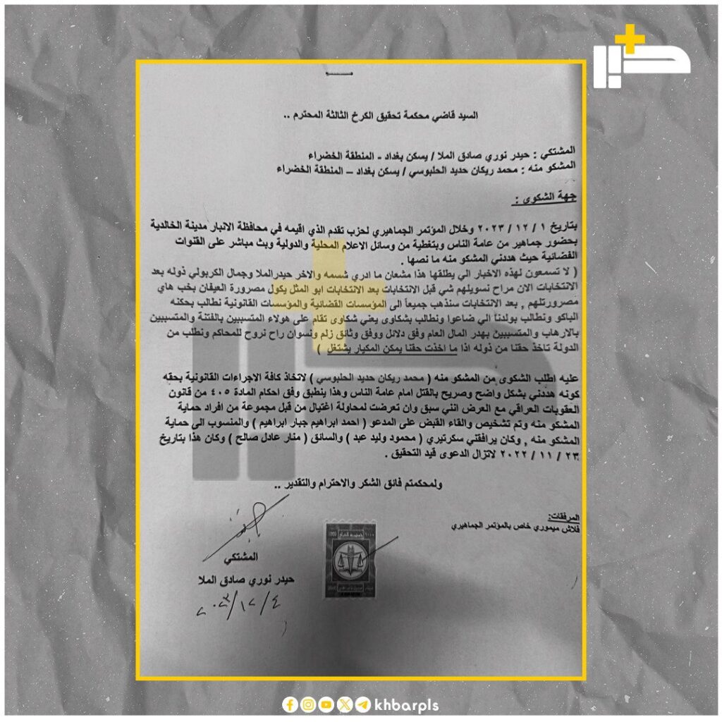 الرئيسية/أخبار/“حصريا لمنصة خبر”.. الملا يرفع دعوى قضائية ضد الحلبوسي بتهمة “التهديد بالقتل” ويطالب باتخاذ الإجراءات القانونية بحقه أخبار أخر الأخبار “حصريا لمنصة خبر”.. الملا يرفع دعوى قضائية ضد الحلبوسي بتهمة “التهديد بالقتل” ويطالب باتخاذ الإجراءات القانونية بحقه 4 ديسمبر، 2023 فيسبوك X ماسنجر ماسنجر واتساب تيلقرام 4 ديسمبر، 2023 فيسبوك X ماسنجر ماسنجر واتساب تيلقرام شاركها فيسبوك X ماسنجر ماسنجر واتساب تيلقرام مشاركة عبر البريد طباعة