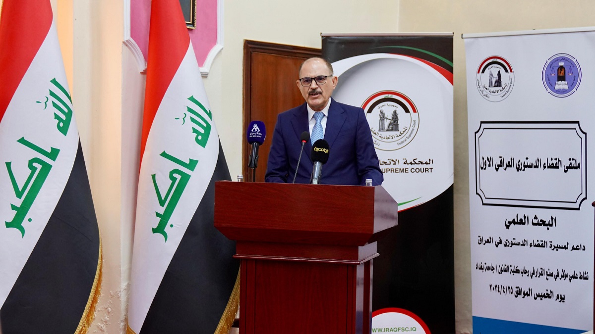 وقال العميري، في كلمته خلال ملتقى القضاء الدستوري العراقي الذي عقد في كلية القانون جامعة بغداد، تابعته منصة خبر: إن “جمهورية العراق، دولة اتحادية واحدة مستقلة ونظام الحكم فيها جمهوري نيابي برلماني ديمقراطي وفقاً لما جاء في المادة الأولى من الدستور”.