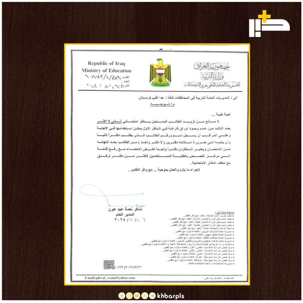 بالوثيقة: وزارة التربية تسمح بتزويد الطالب الممتحن بدفتر امتحاني آخر