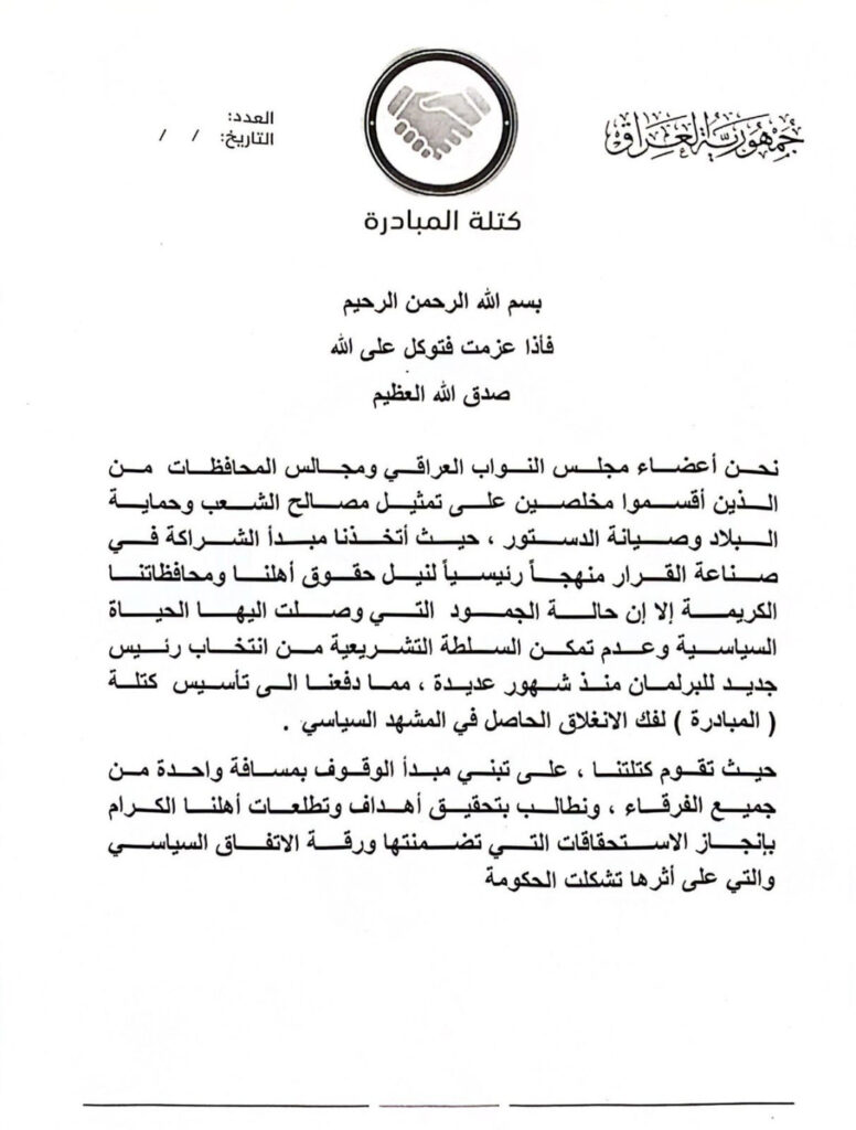 لفك الانغلاق السياسي.. نواب وأعضاء مجالس المحافظات ينشقون عن “تقدم” ويشكلون “المبادرة”
