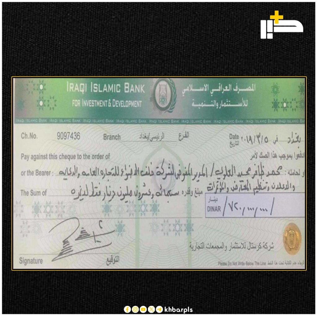 تداول ناشطون على مواقع التواصل الاجتماعي، وثائق وصكوك مالية بمئات الملايين صرفت من أموال مجلس النواب لصالح شركة مملوكة لعضو حزب تقدم محمد العلوي.