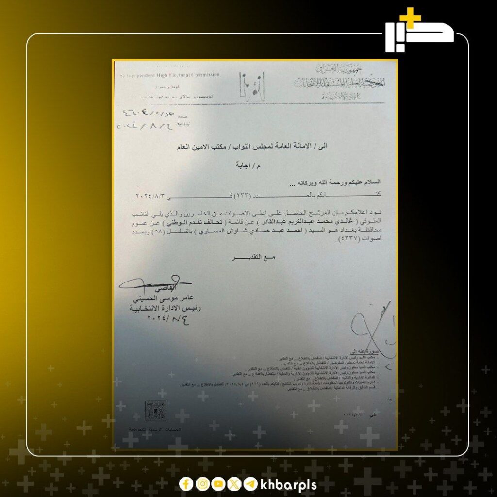 بالوثيقة: المفوضية تسحب ترشيح “المساري” وتدعو البرلمان لتريث لحين أختيار البديل