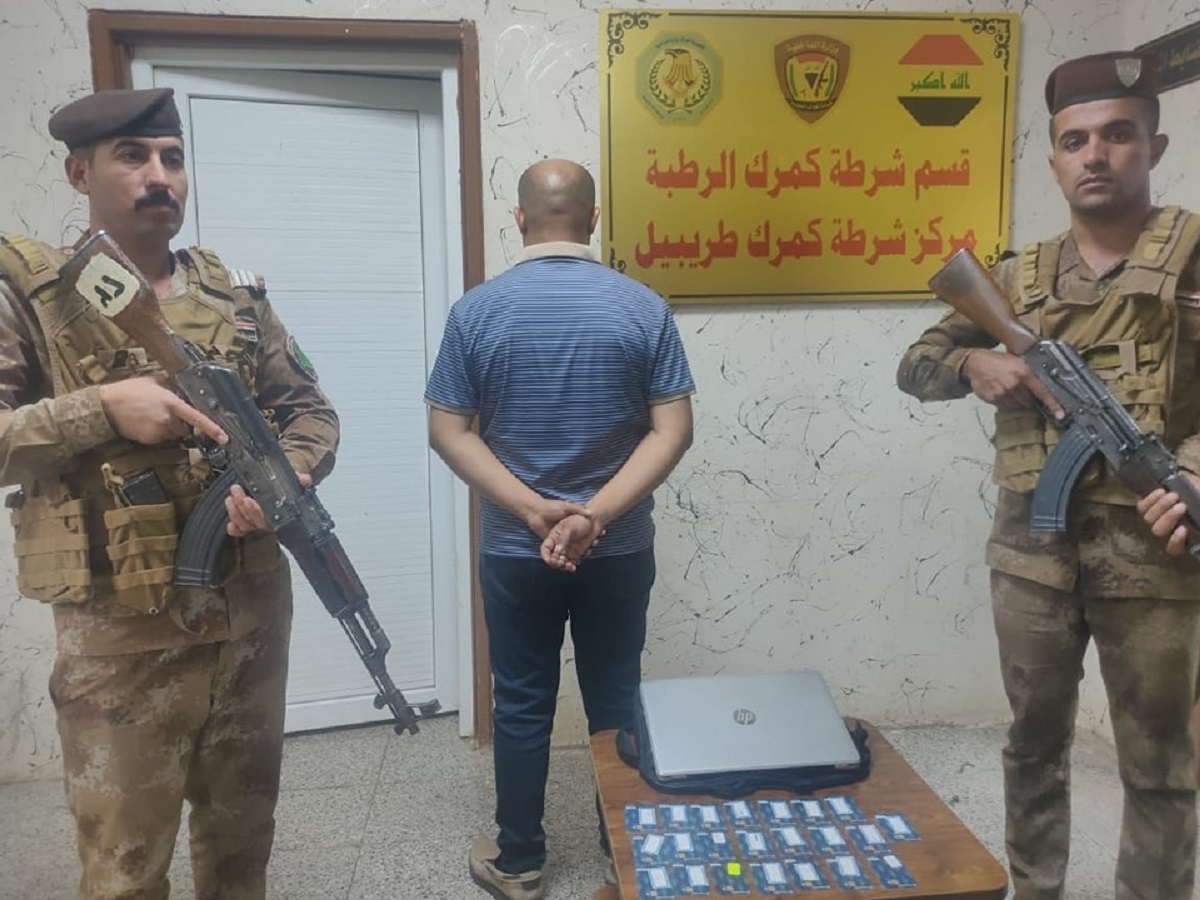 وقالت القيادة في بيان تلقته “منصة خبر”، أنه “استمراراً لجهود قيادة قوات الحدود في إحباط محاولات تهريب العملة، ضبطت مفارز مركز شرطة كمرك طريبيل التابع لمديرية شرطة كمرك المنطقة الثانية، متهماً بحوزته (22) بطاقة مصرفية مختلفة الانواع معدة للتهريب”.