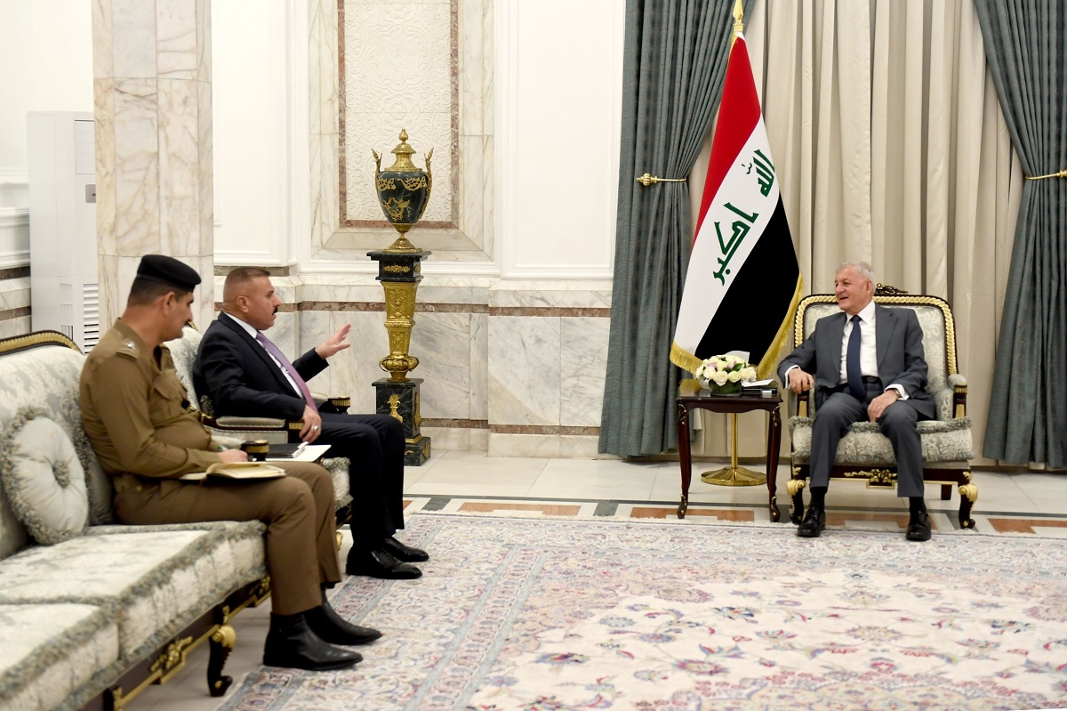 وقال مكتب رئاسة الجمهورية في بيان تلقته “بغداد اليوم” إن “رئيس الجمهورية عبد اللطيف جمال رشيد، استقبل في قصر بغداد، وزير الداخلية الفريق عبد الأمير الشمري والوفد المرافق له”، وجرى، خلال اللقاء، “بحث التطورات الأمنية وسبل الحفاظ على الأمن”.