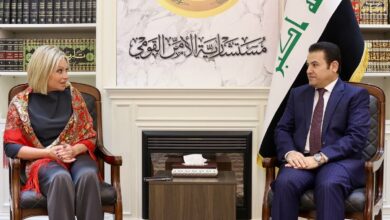 الأعرجي يبحث مع بلاسخارت التعاون بمجالي مكافحة الإرهاب وملف مخيم الهول