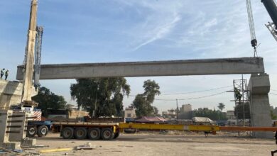 (صور) تثبيت الروافد الكونكريتية لمجسرات ساحة عدن وصنعاء ببغداد